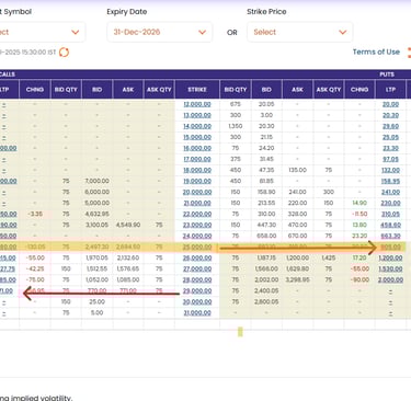 You can notice Price of 25000 CALL Option is 2580,